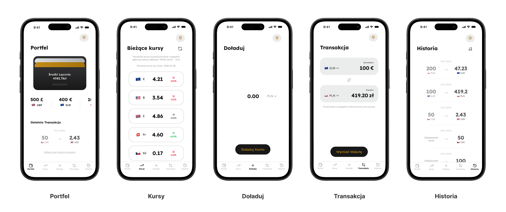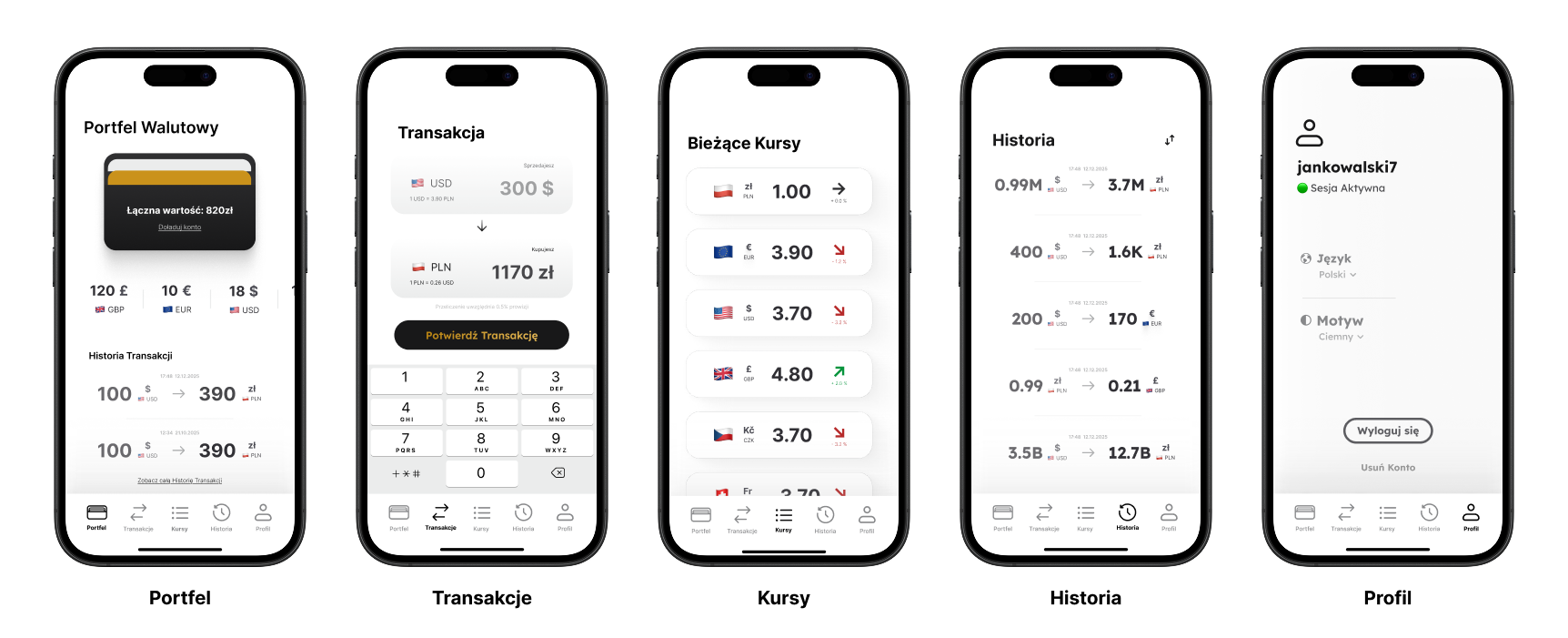 🔜 Obsługa wielu portfeli walutowych - architektura interfejsu została zaprojektowana z myślą o łatwej rozbudowie o wiele portfeli (np. osobny portfel oszczędnościowy).
