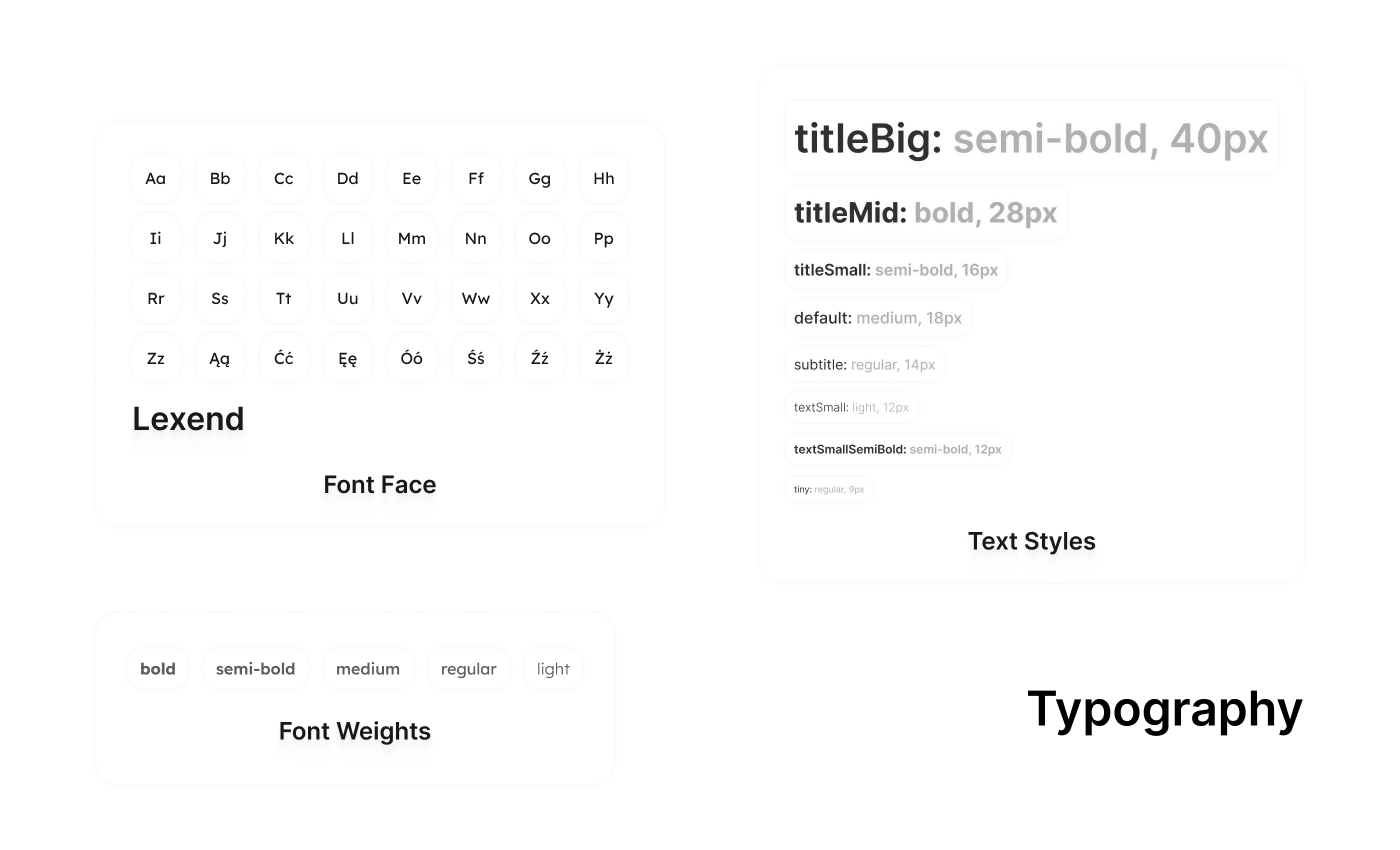 Stworzyłem skromny Style Guide z podstawowymi elementami interfejsu, tak aby aplikacja była spójna i estetyczna.