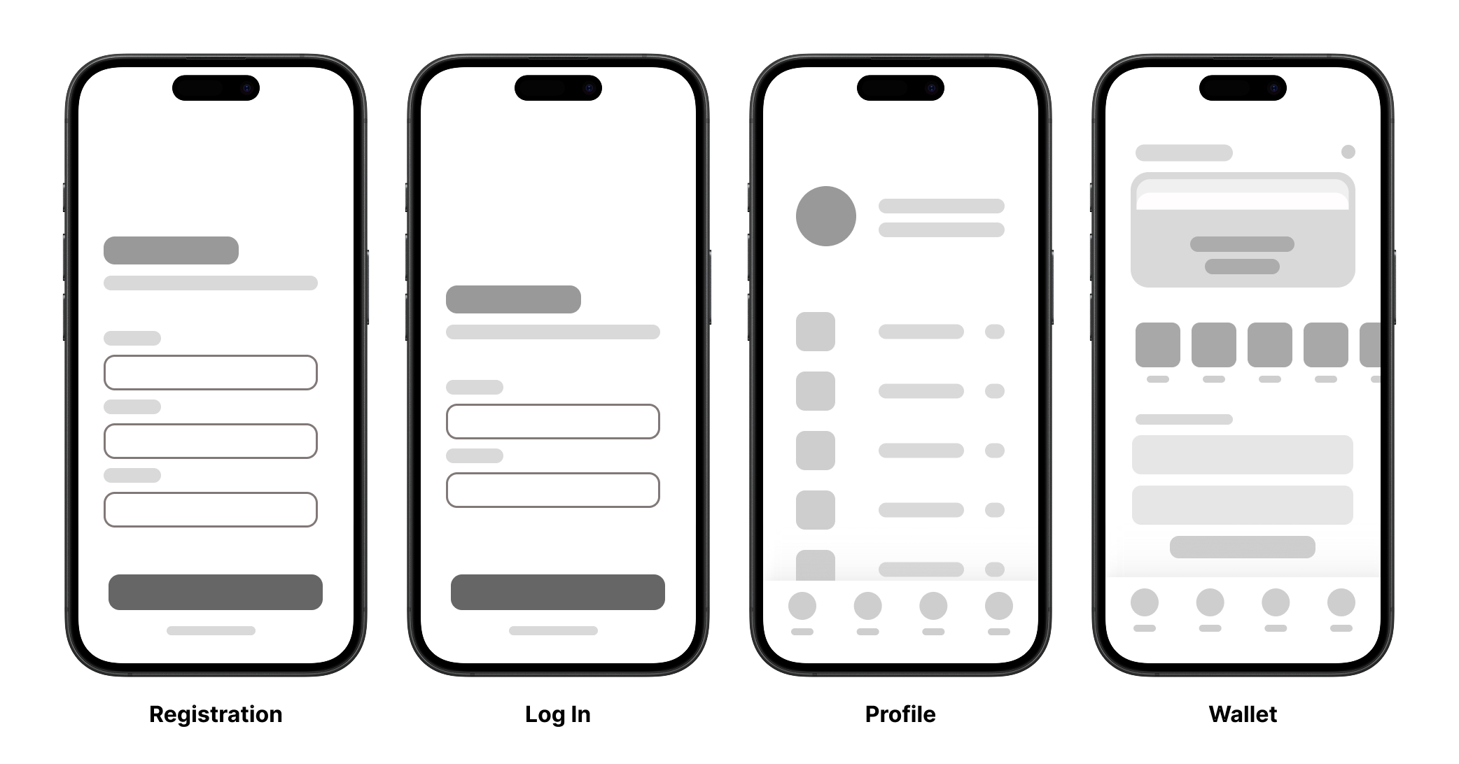 Wykorzystując wireframe'y rozmieściłem elementy na ekranach aplikacji tak, aby wyczerpać główne zapotrzebowania naszej grupy docelowej oraz priorytetowe funkcje aplikacji.