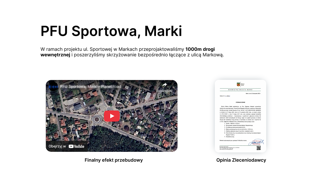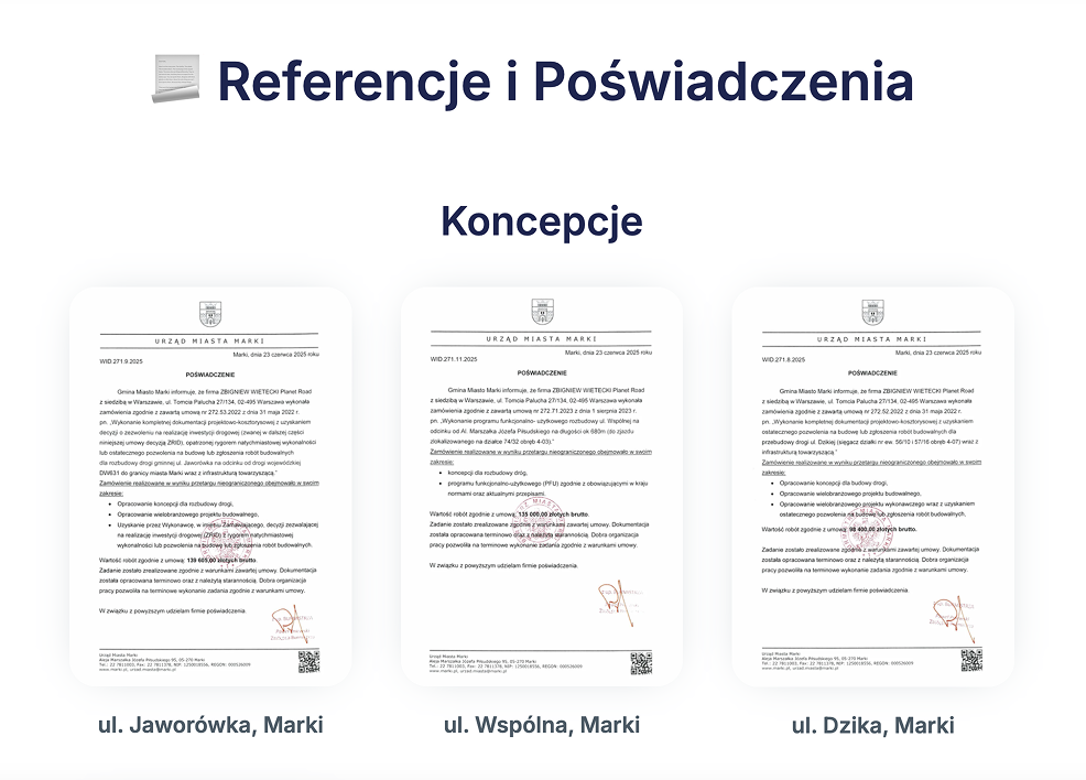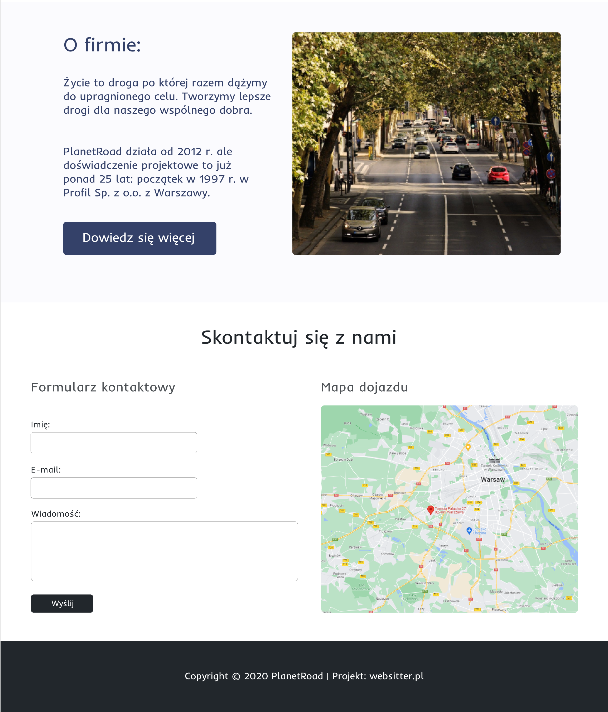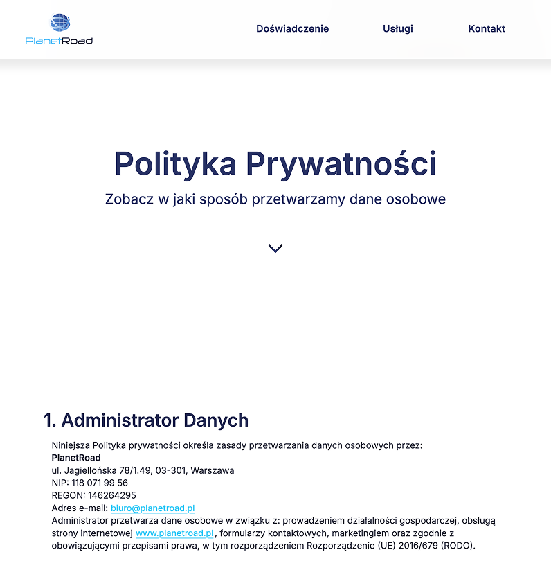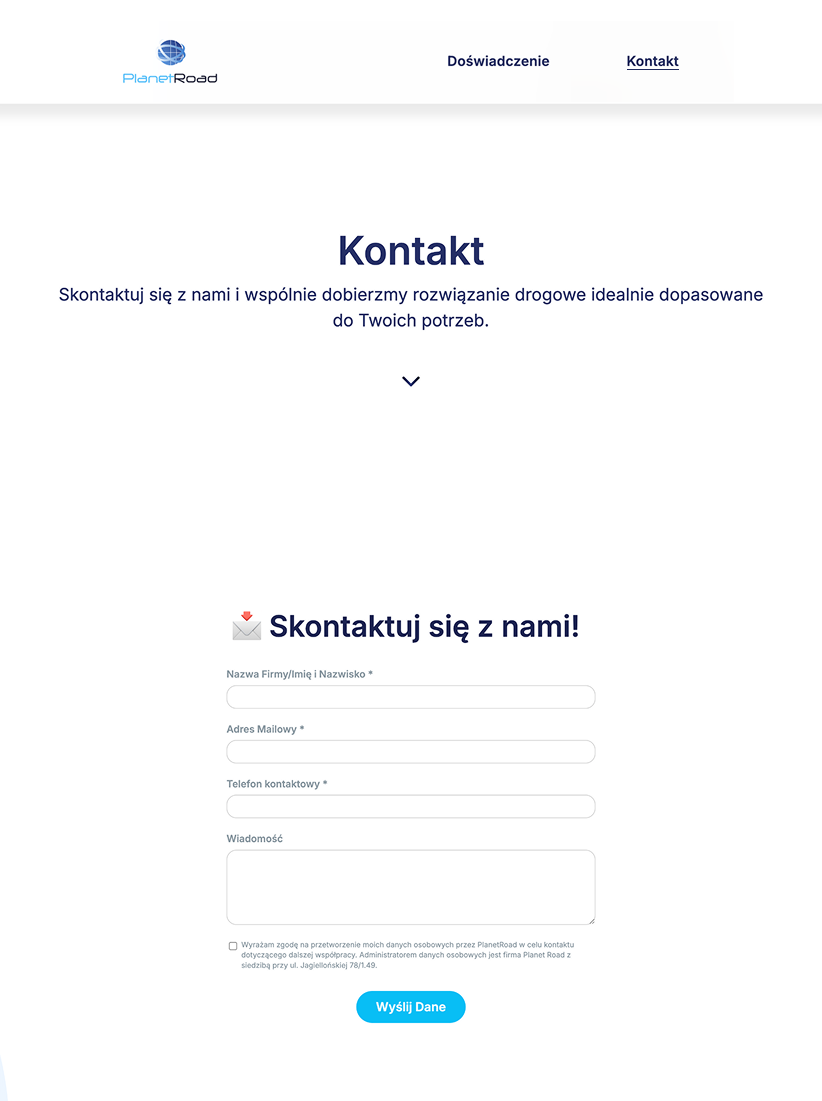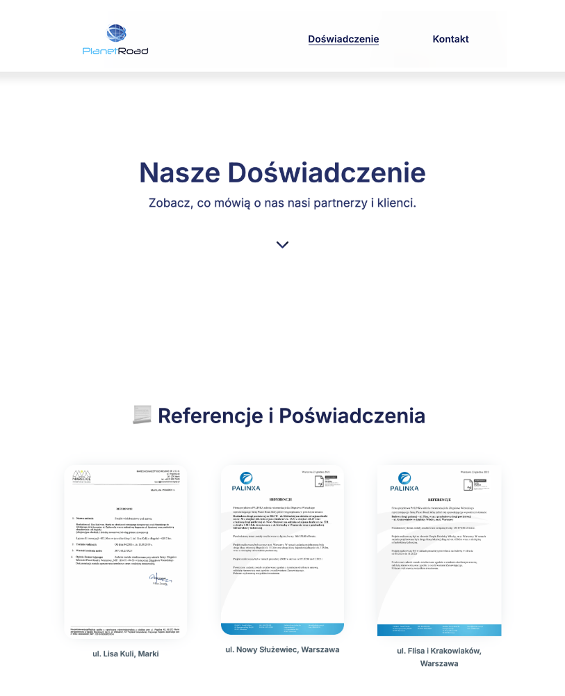 🎯 Ułatwienie klientowi poznania firmy – szybki dostęp do informacji o działalności i doświadczeniu PlanetRoad.