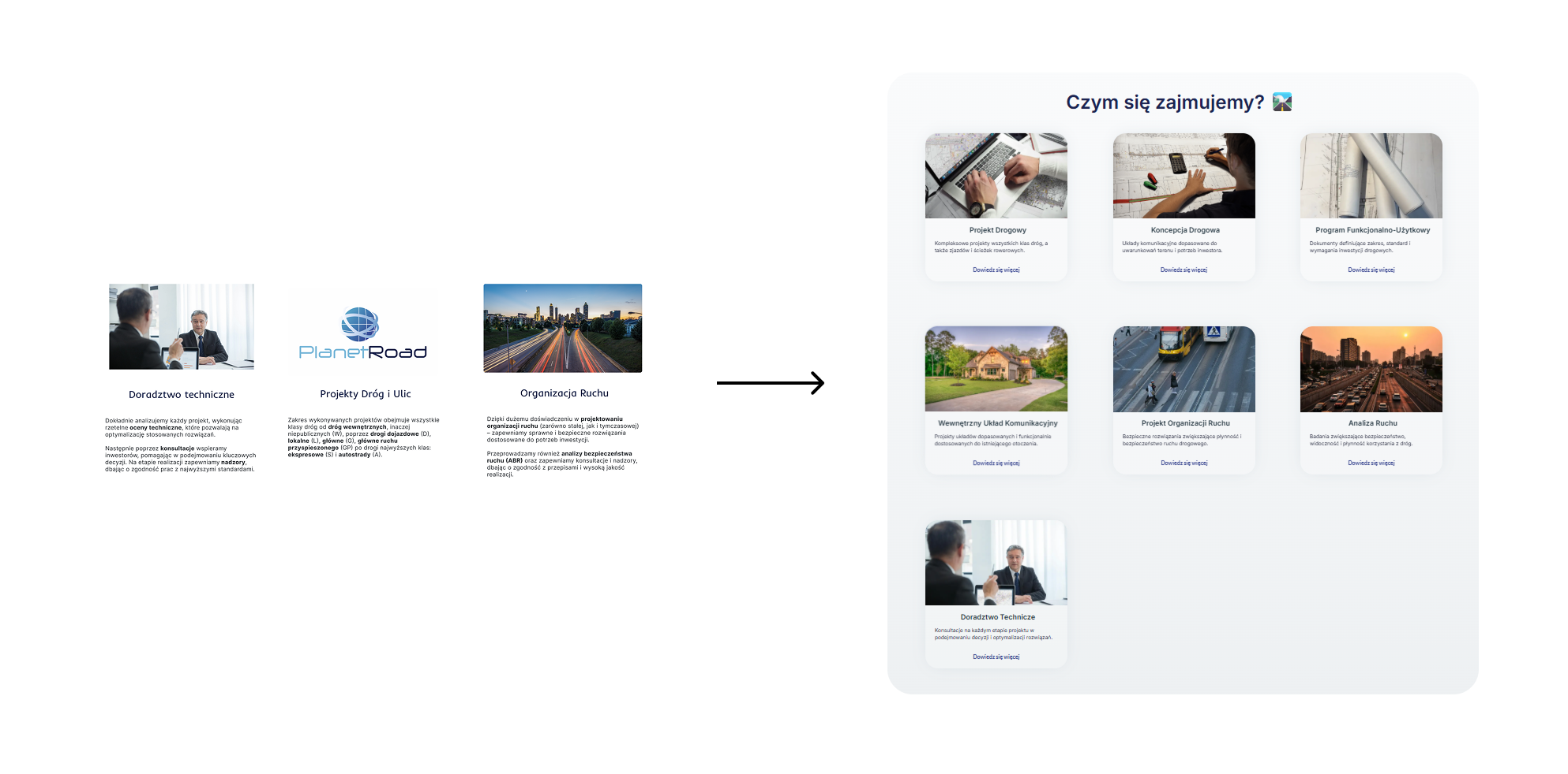 Dzięki temu prezentacja oferty stała się spójniejsza, a użytkownicy mogli szybciej zrozumieć, czym firma faktycznie się zajmuje — bez konieczności wczytywania się w szczegółowe opisy.