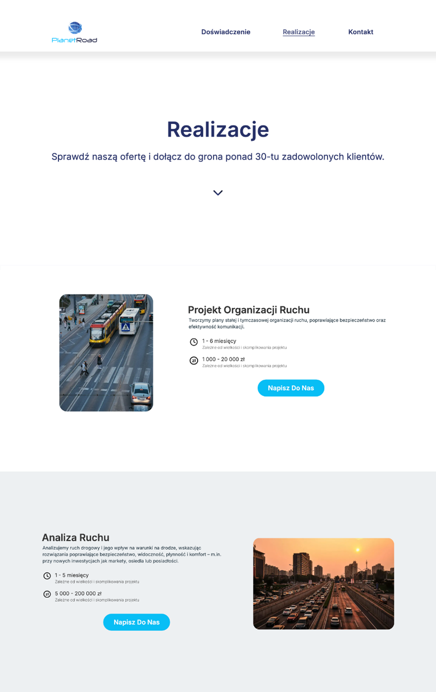 – sekcja artykułów lub aktualności branżowych (np. zmiany w przepisach, dobre praktyki projektowe) mogłaby budować długofalową widoczność w Google oraz pozycjonować PlanetRoad jako lidera wiedzy w branży.