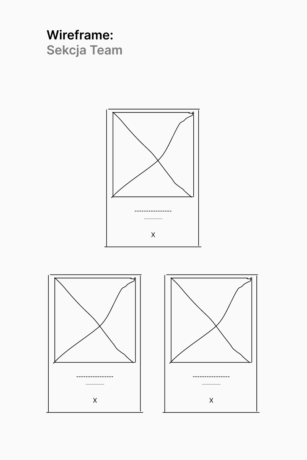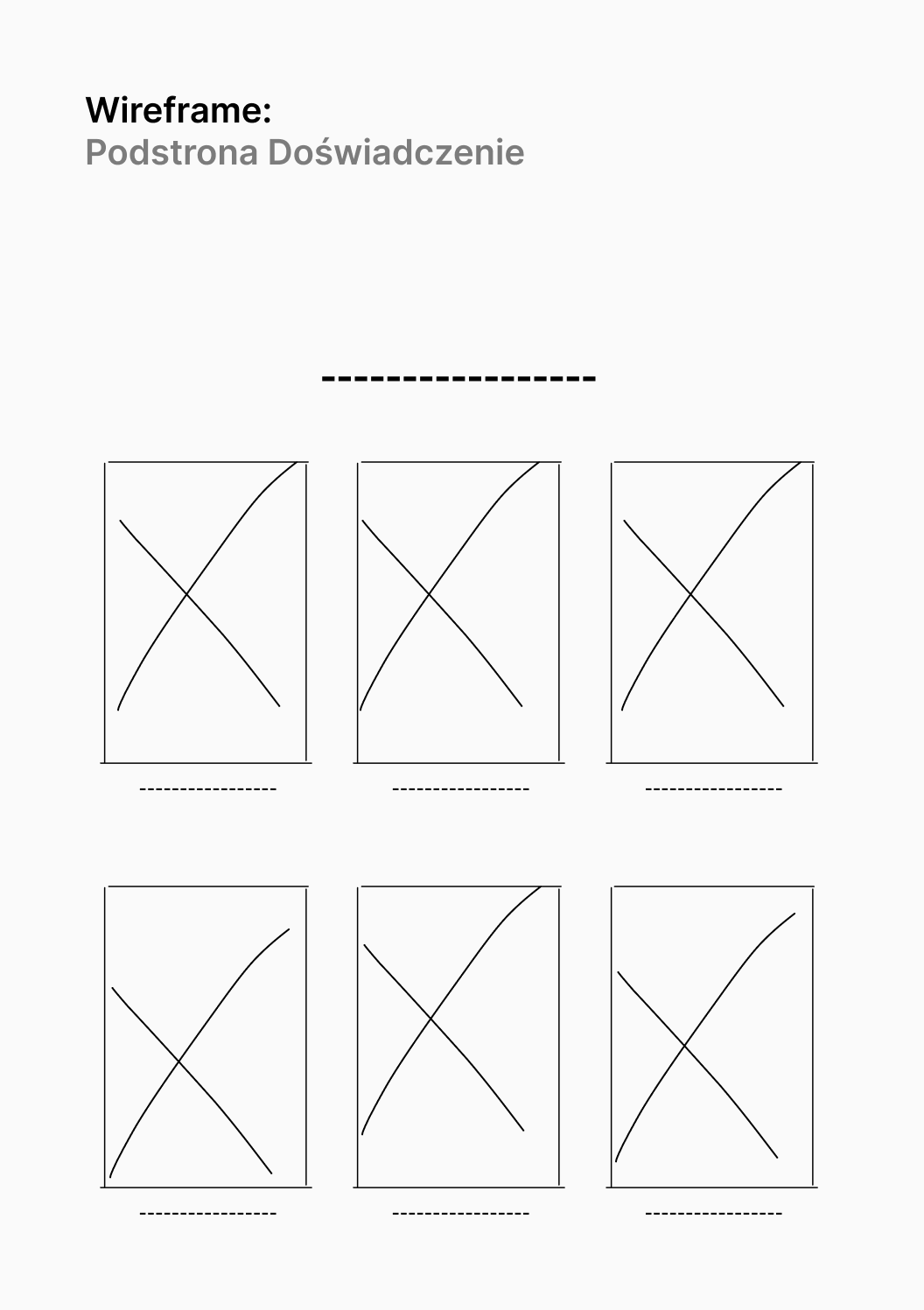 Równolegle pracowałem na niskopoziomowych wireframe’ach, testując różne układy treści i hierarchię informacji, zanim przeszedłem do finalnego interfejsu.